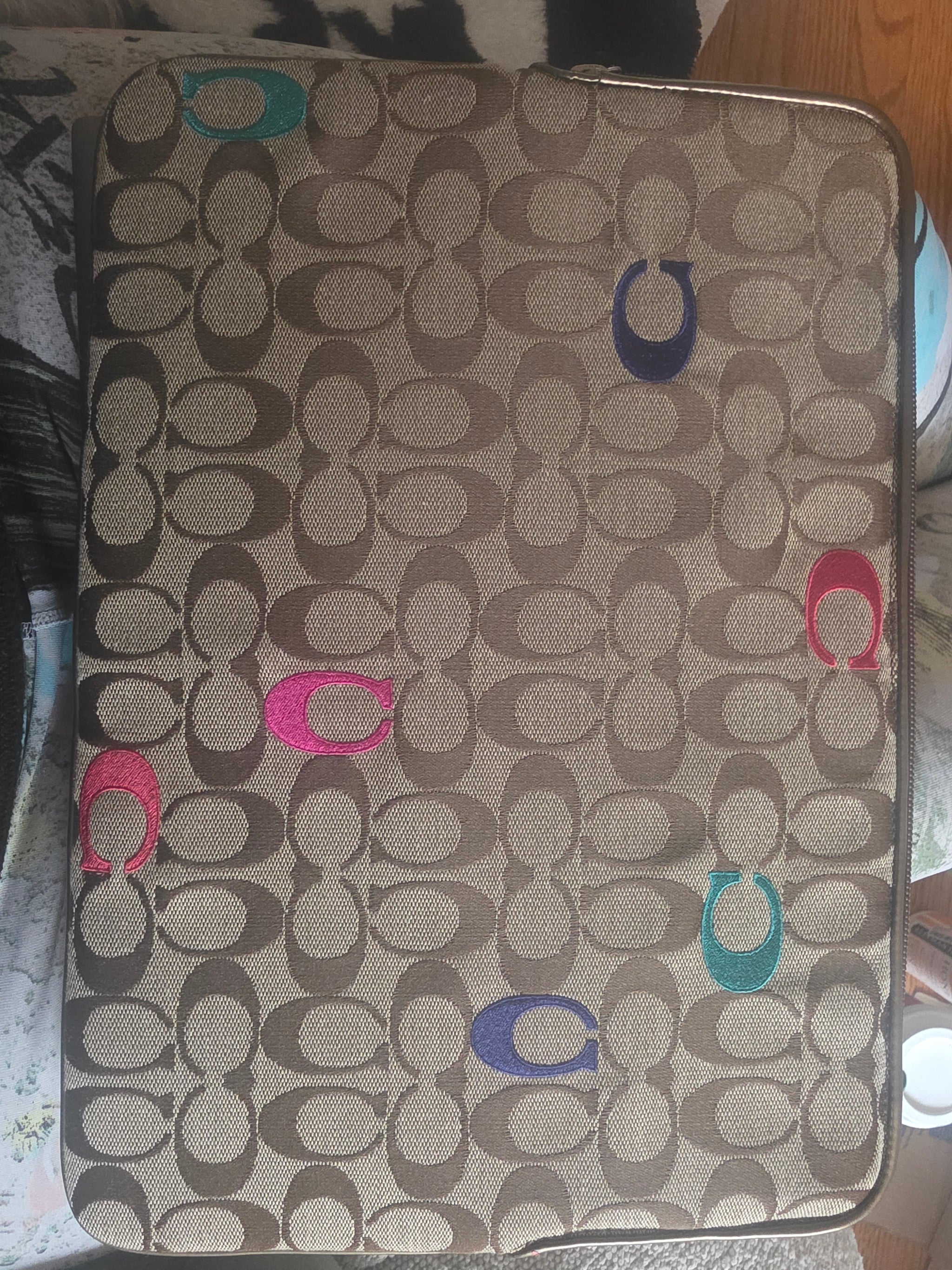 Coach Signature Multi-Colored Computer Laptop Tablet Padded Zippered Sleeve Case (Excellent Condition)