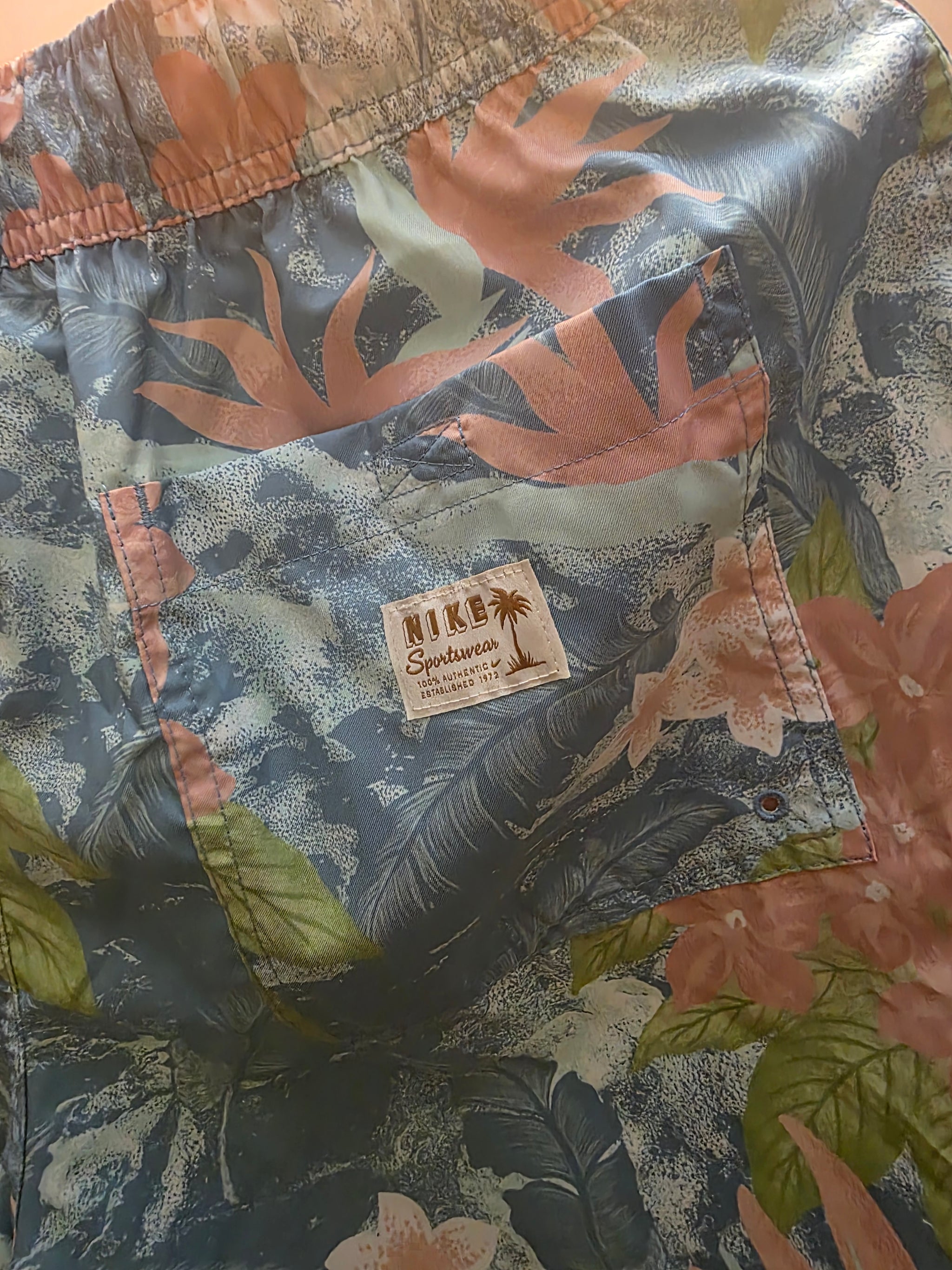 The iconic brand logo blossoms amongst a furry of pressed illusion flowers on these swim trunks generously cut with flexible,...